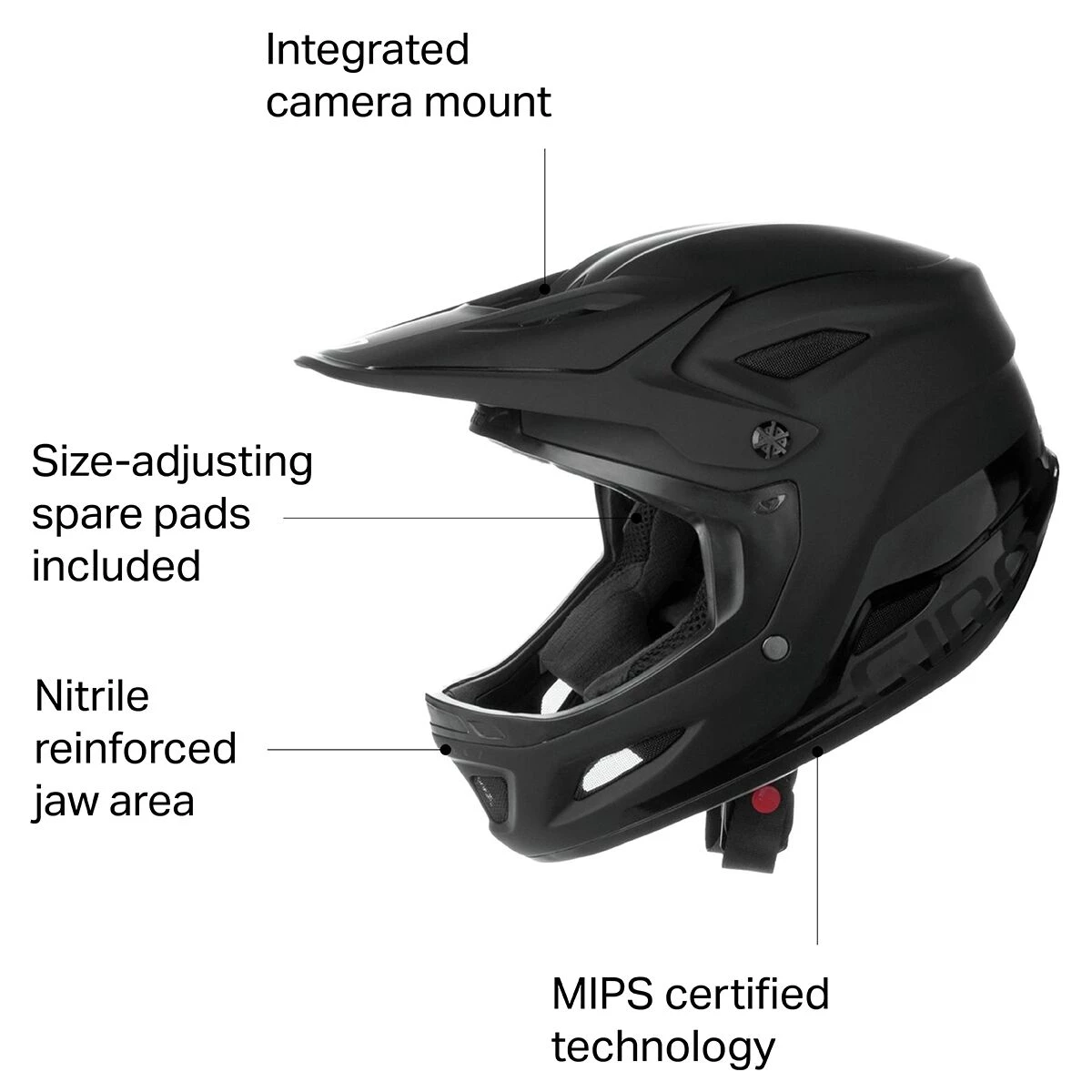 Rather than choosing the traditional In-Mold construction most helmets use, Giro opted for a fiberglass shell for the Disciple MIPS. Light and strong, the shell comes equipped to throw down with rocks, gravel, and the occasional tree, with an EPS foam liner for extra backup. Giro even beefed up the jaw area with extra Vinyl nitrile padding for handlebar and tree branch bashings, and it made sure to make the integrated POV camera mount able to break away in the event of a crash to prevent further damage to helmet, camera, or anything else.